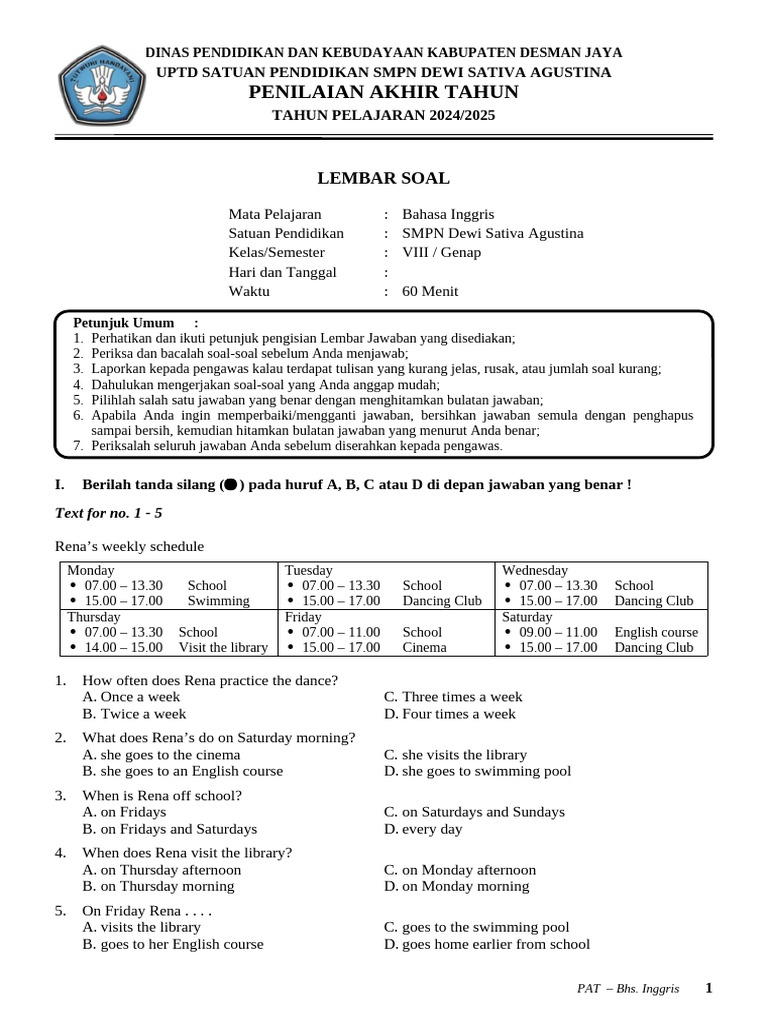 Contoh soal kelas 8 bahasa inggris kd 3.9