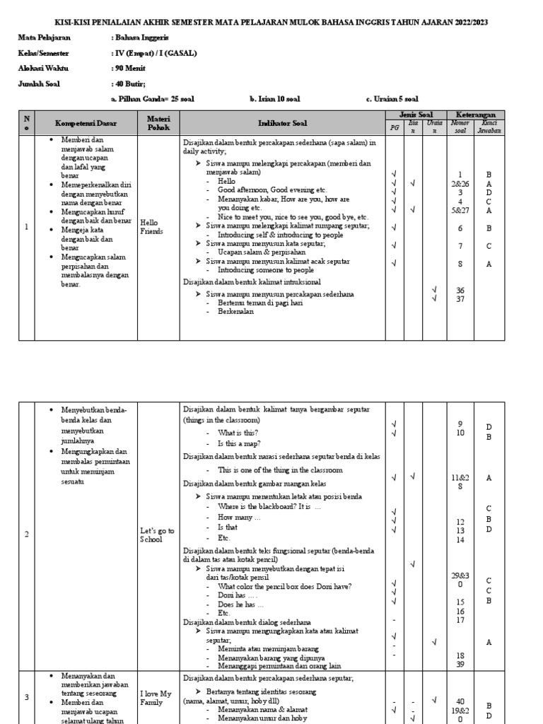 2. Strategi Pengerjaan Soal: Kisi-kisi seringkali mengindikasikan bentuk soal (pilihan ganda, isian singkat, uraian) dan bobot penilaiannya, membantu siswa menyusun strategi pengerjaan yang efektif.