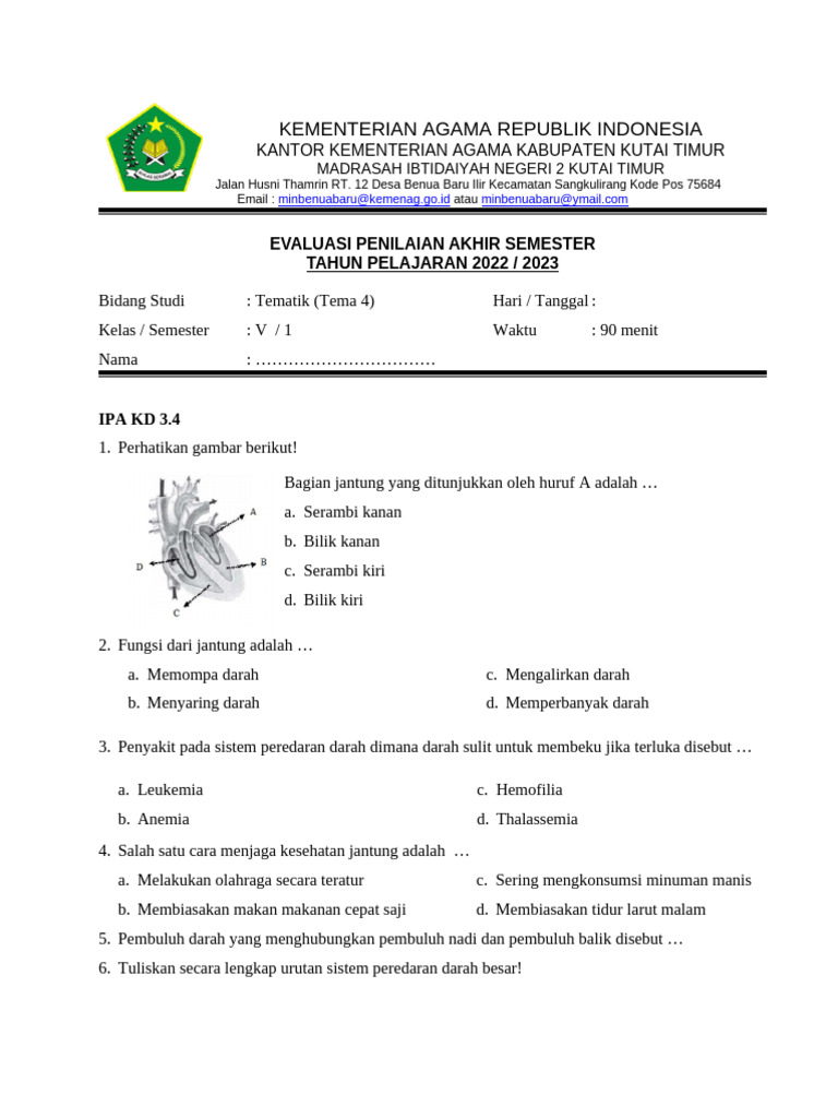 Berikut adalah contoh soal PAS Tema 4 Kelas 5 SD yang disusun berdasarkan kisi-kisi di atas, mencakup berbagai bentuk soal: