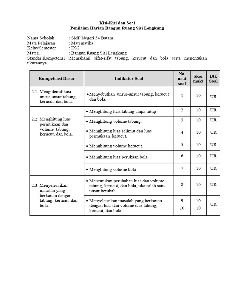 - Alokasi Waktu dan Jumlah Soal: Menentukan berapa banyak soal pilihan ganda, isian singkat, uraian, atau tugas lainnya, serta perkiraan waktu yang dibutuhkan untuk menyelesaikannya.